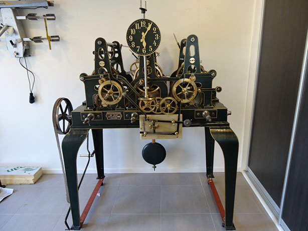 Turret/tower clock with setting dia, striking work, quarters and hour strike.